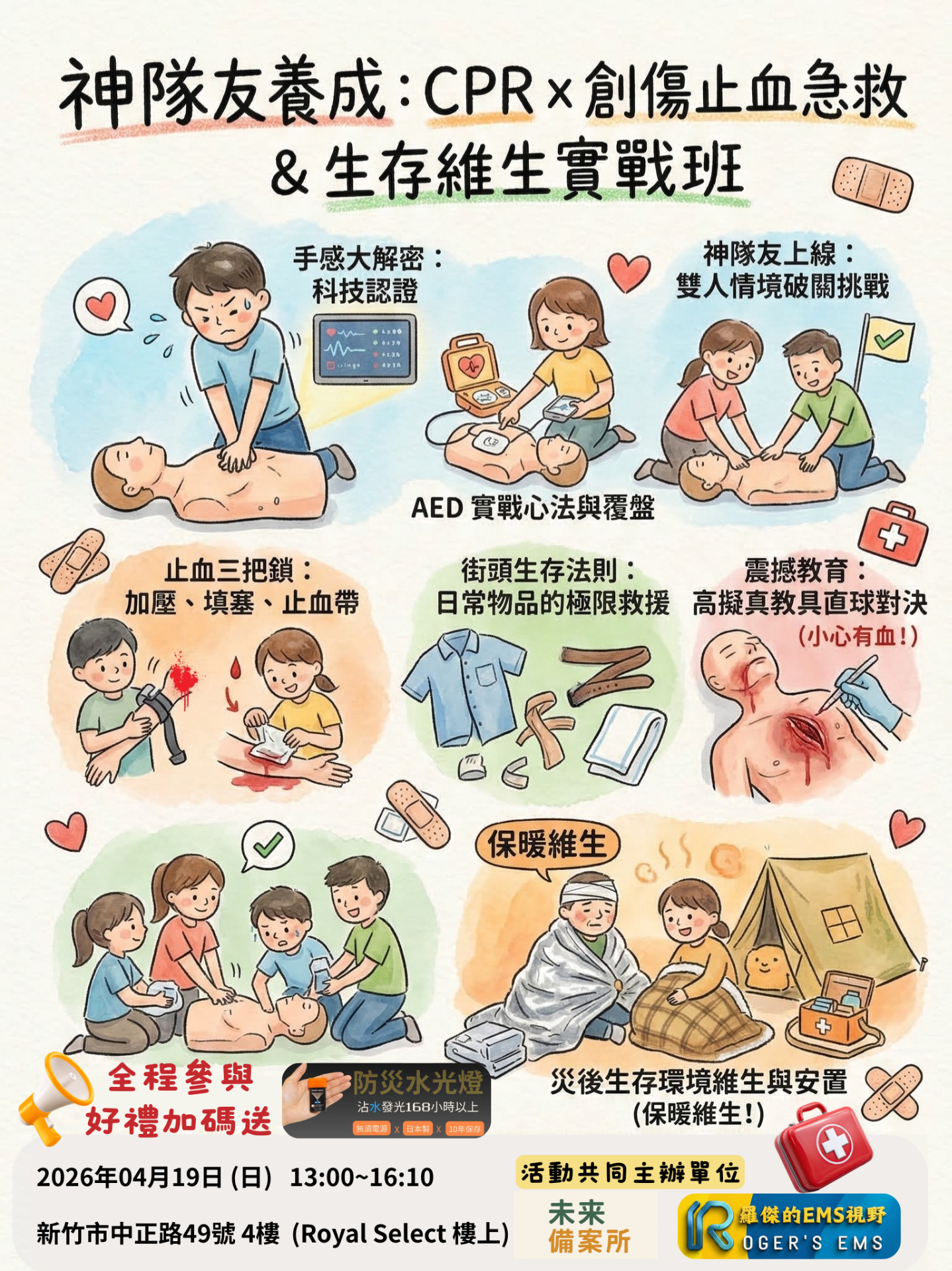 - 保暖維生關鍵: 羅傑教官特別強調,創傷大出血後「保暖」是活命關鍵, 我們將深入解析失溫危機與維生設備的應用。